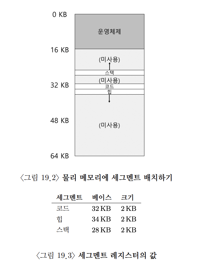 우리가 기준으로 삼은 주소 공간에는 코드, 스택, 힙의 세 종류의 세그먼트가 존재합니다.