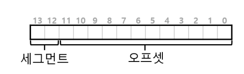 처음 최상위 2비트를 세그먼트로사용하고 하위 12비트는 세그먼트 내의 오프셋입니다.