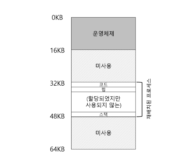 프로세스 주소 공간이 실제로 다른 물리 주소에 배치되어 있을 떄, 주소 0번지부터 시작하는 가상 주소 공간의 환상을 제공하는 방법이 관건입니다.